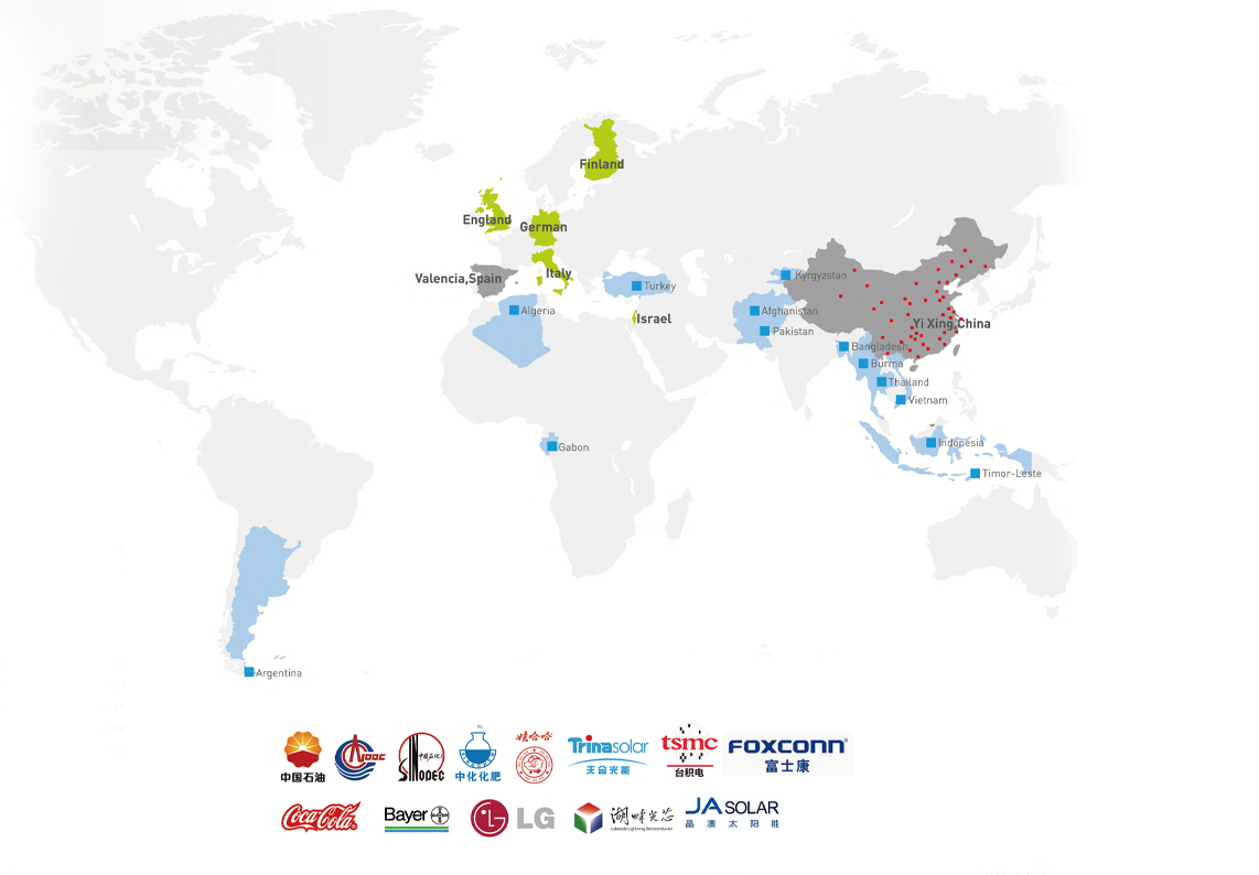 江華集團(tuán)業(yè)務(wù)涉及石油化工、重工業(yè)、冶金礦業(yè)、電力、制藥、新能源等各行業(yè),業(yè)務(wù)遍及全國各大城市,并已承接了20多個海外環(huán)保治理項目,遍及孟加拉、土耳其、俄羅斯緬甸等國,同時開發(fā)了越南、印度、泰國、斯里蘭卡等國際環(huán)保市場,長期與美國、法國芬蘭、瑞典、德國、日本、韓國、以色列等國外知名環(huán)保公司保持緊密合作關(guān)系。